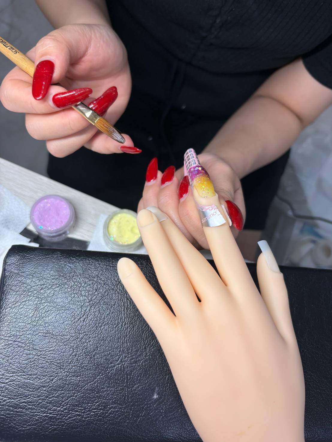 午後は、アーティフィシャルネイルのデモンストレーションと実習。こちらも非常にスムーズに取り組めており、仕上がりも上々です。今後はさまざまなデザイン資料を参考にしながら、技術とセンスを磨いていくとより表現の幅が広がります。