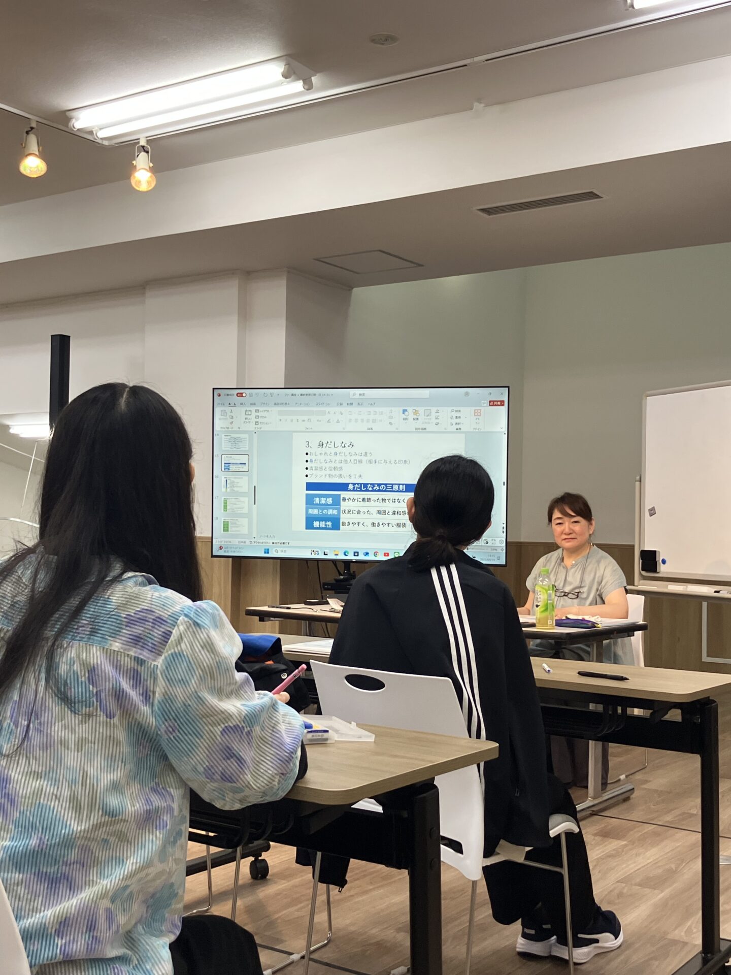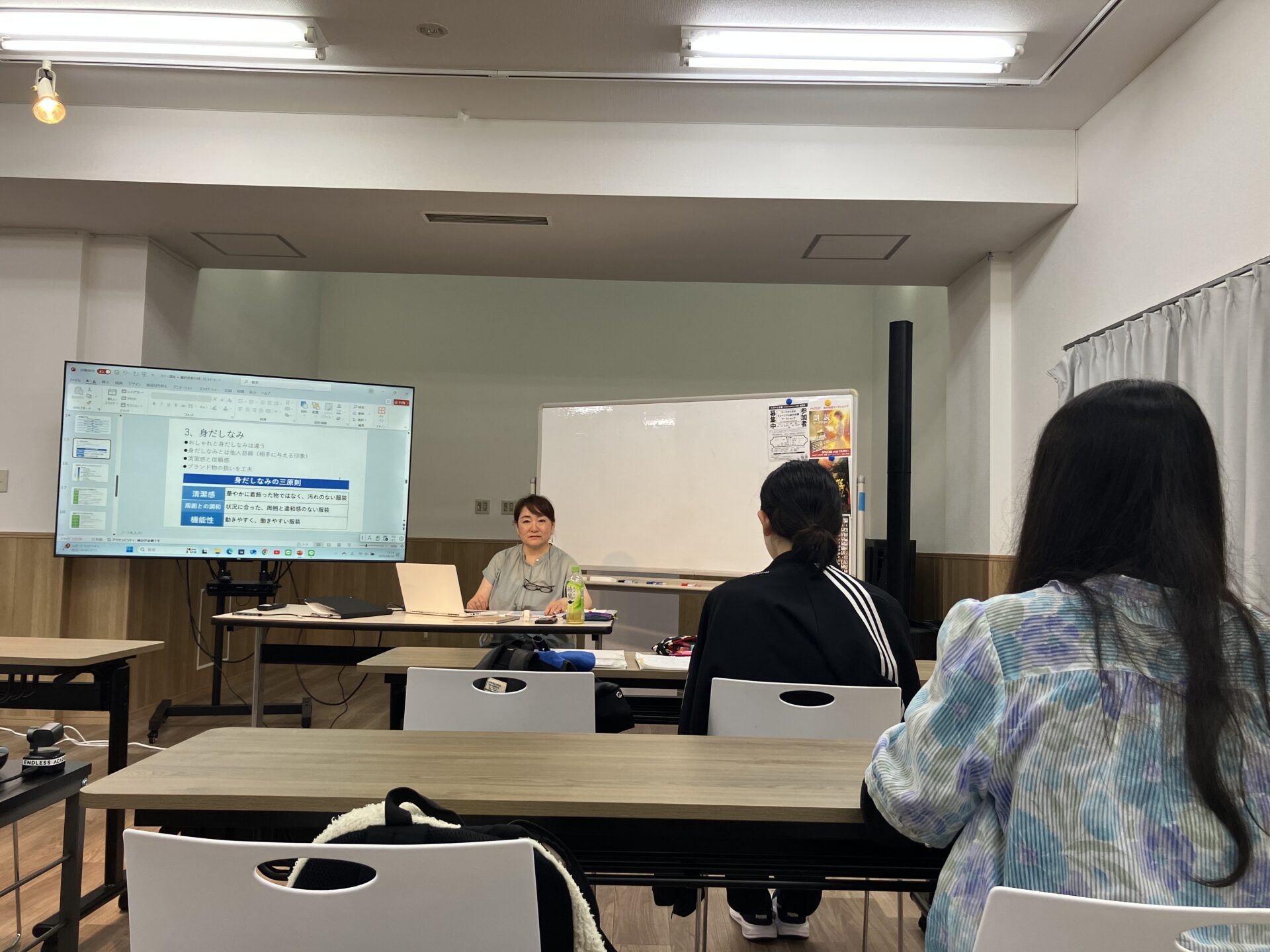 講座では、挨拶や言葉遣い、立ち居振る舞いといった基本的な礼儀作法から、身だしなみやコミュニケーションの取り方まで、実践を交えながら学びました。美容やサービスの現場では技術力と同じくらい人柄や接遇が求められるため、日々の生活や今後の就職活動にも直結する貴重な学びの時間となりました。