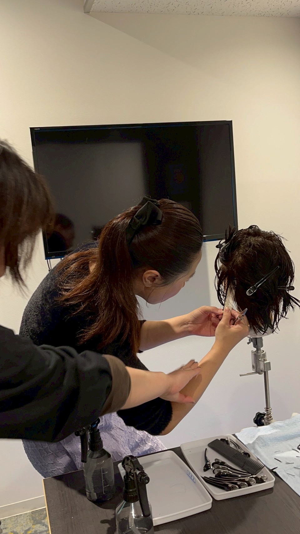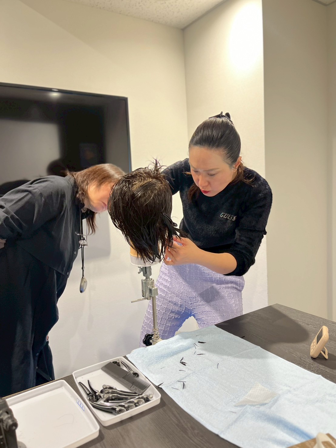 美容師国家試験対策カット講習を行いました。今回は国家試験で確実に評価される技術にフォーカスした実践練習を行いました。